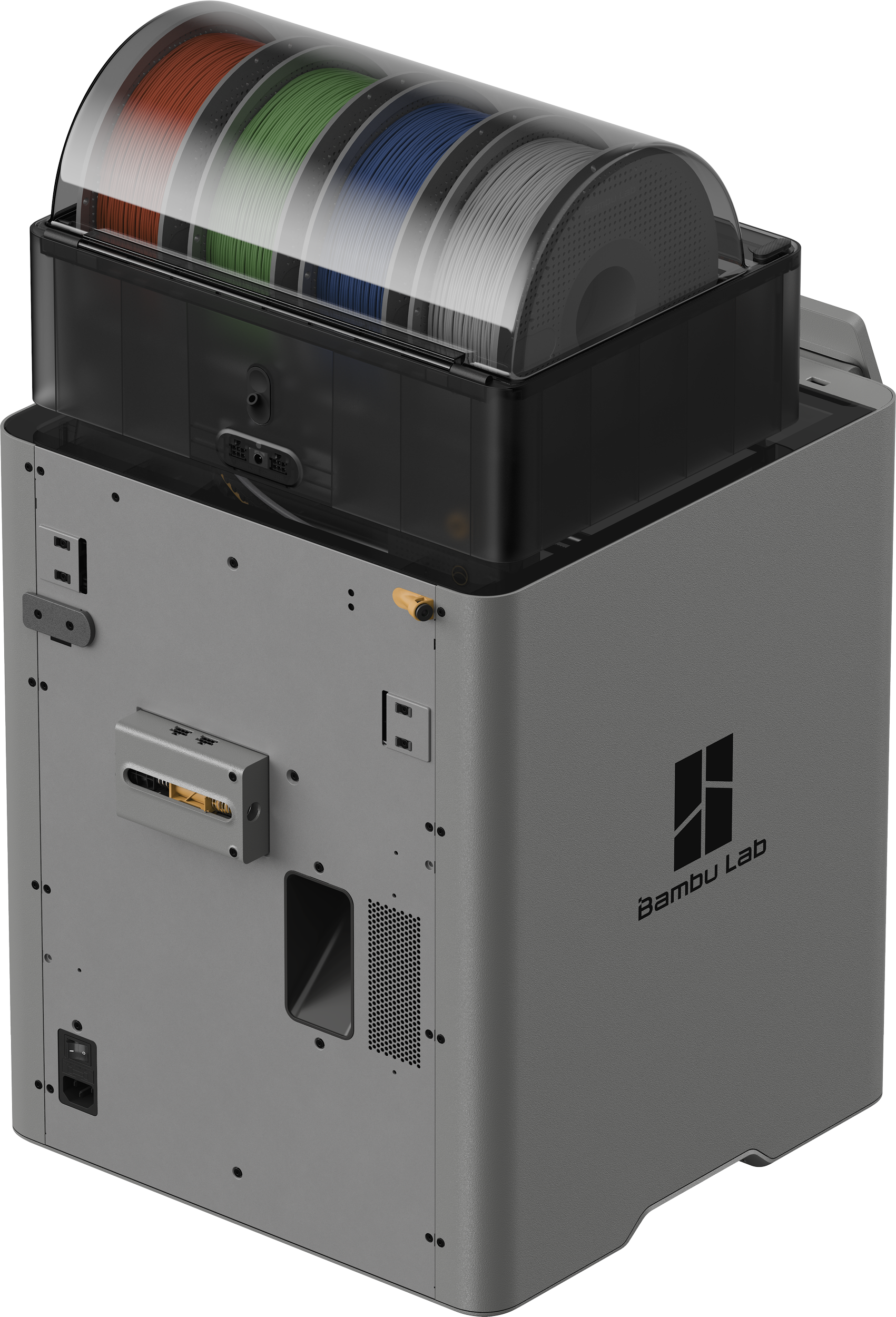 Met ruimte voor vier filamentspoelen tegelijk biedt de AMS 2 Pro je niet alleen flexibiliteit, maar ook volledige controle over je printproject. Dankzij de seriële uitbreiding met maximaal vier AMS 2 Pro en acht AMS HT eenheden kun je zelfs tot 24 verschillende filamenten tegelijk beheren! Dankzij de nieuwe krachtige servomotor kun je filamenten ook tot 60% sneller verwisselen.